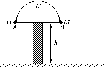 2.(宿迁市)如图所示,一轻质细绳两端各系一小球(可视为质点),质量分别为m和M(M>m),跨放在一个半径为R = 0.4m的光滑半圆柱体上.两小球从水平直径AB的两端由静止释放,当m达到圆柱体最高点C处时,恰脱离圆柱体,此时立即剪断细绳.已知AB离水平地面高度h = 2.8m,假设两球落地后不反弹,求: