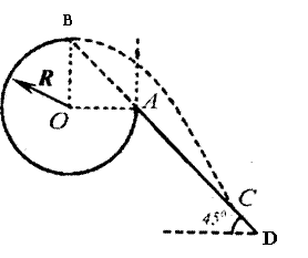 圆弧形光滑轨道半径为R ,A端与圆心O等高, AD为与水平方向成45°的斜面,B端在O的正上方,一个小球在A点正上方由静止释放,自由下落至A点进入圆轨道并恰能到达B点.求:
