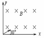 如图所示,在第一象限内有垂直纸面向里的匀强磁场,一对正、负电子(正电子的质量与电子相同,而电性相反)分别以相同速度沿与x轴成30°角从原点射入磁场,则正、负电子在磁场中运动时间之比为( )