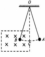 15.如图所示,单摆摆球为带正电的玻璃球,摆长为l且不导电,悬挂于O点。当摆球摆过竖直线OC时便进入或离开一匀强磁场,此磁场的方向与单摆摆动平面垂直。 在摆角α<5°的情况下,摆球沿着AB弧来回摆动,下列说法正确的是( Y)