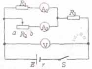 当R2的滑动触点在a端时合上开关S,此时三个电表A1、A2和V的示数分别为I1、I2和U。现将R2的滑动触点向b端移动,则三个电表示数的变化情况是( )![]()