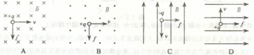 7.带正电的粒子以初速v进入匀强磁场后,仅在磁场力的作用下运动.关于磁场B的方向、带电粒子速度v的方向及其受到磁场力(洛仑磁力)f的方向,下列四幅图中正确的是