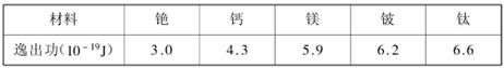 6.下表给出了一些金属材料的逸出功( h=6.6×10-34J·s, c=3.00×108m/s)