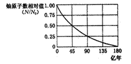 地球的年龄到底有多大,科学家利用天然放射性元素的衰变规律,通过对目前发现最古老的岩石中铀和铅含量来推算。测得该岩石中现含有的铀是岩石形成初期时(岩石形成初期时不含铅)的一半,铀238衰变后形成铅206,铀238的相对含量随时间变化规律如图5所示,图中N为铀238的原子数,N0为铀和铅的总原子数.由此可以判断出