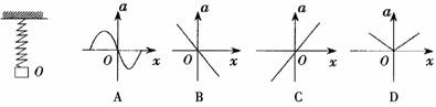 2、轻弹簧下端悬挂一个质量为m的重物,平衡后静止在原点O,如图所示,现令其在O点上下做简谐运动,下图中哪一个图象能正确反映重物的加速度a随位移x变化的关系