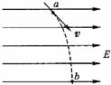 一带电粒子沿如图所示的曲线越过匀强电场,重力不计,则粒子带何种电荷以及该粒子在a、b两点的动能大小,下列结论正确的是