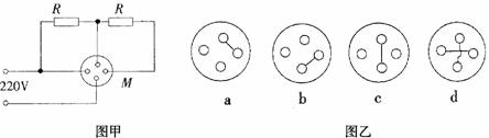 10、有一只电熨斗,内部电路如图甲所示,其中M为旋钮内部的接线端子,旋钮有“高”“中”“低”“关”4个挡,这4个挡的内部接线有如图乙所示的4种方式,则下列判断正确的是