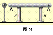 如图21所示,绝缘支柱支持的金属导体A和B开始都不带电,把带正电荷的C移近导体A,A和B下面的金属箔张开.这是