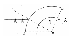 18.(每步2分,共6分)用圆弧状玻璃砖做测定玻璃折射率的实验时,先在白纸上放好圆弧状玻璃砖,在玻璃砖的一侧竖直插上两枚大头针P1、P2,然后在玻璃砖的另-侧观察,调整视线使P1的像被P2的像挡住,接着在眼睛所在的一侧插两枚大头针P3和P4,使P3挡住P1和P2的像,P4挡住P3,以及P1和P2的像,在纸上已标出大头针位置和圆弧状玻离砖轮廓如下图所示(O为两圆弧圆心,图中已画出经过P1、P2点的入射光线)