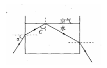 一束单色光由左侧射入盛有清水的薄壁圆柱形玻璃杯,图为过轴线的横截面,调整入射角α,使光恰好在水和空气的界面上发生全发射。已知水的折射率为