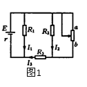 如图1所示当滑动变阻器的滑片向b端移动时,通过电阻R1、R2、R3的电流强度I1、I2、I3的变化情况是 ( )