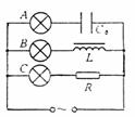 如图所示,当交流电源的电压为220V,频率为50Hz时,三只灯泡A、B、C的亮度相同,若将交流电源的频率改变为100Hz,则 ( )