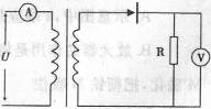12.一理想变压器原副线圈的匝数比是10:1,原线圈接入电压为220V的正弦交流电源,一只理想二极管和一个阻值为10