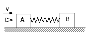 16.如图所示,两个质量都为M的木块A、B用轻质弹簧相连放在光滑的水平地面上,一颗质量为m的子弹以速度v射向A块并嵌在其中,求弹簧被压缩后的最大弹性势能。