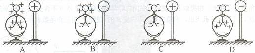 1.使带电的金属球靠近不带电的验电器,验电器的箔片张开。下列各图表示验电器上感应电荷的分布情况,其中正确的是 ( )