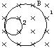 一个静止的放射性原子核发生天然衰变时,在匀强磁场中得到内切圆的两条径迹,如图所示.若两圆半径之比为44∶1,则发生的是 衰变;轨迹2是 的径迹;该放射性元素的原子序数是 。