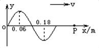 (12分)如图所示,一列向右传播的简谐横波,波速大小为0.6m/s,P质点的横坐标x=0.96m。从图中状态开始计时,求: