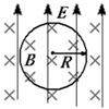 如图所示,在互相垂直的匀强电场和匀强磁场中,电量q的液滴做半径为R的匀速圆周运动,已知电场强度为E,磁感应强度为B,则油滴的质量和环绕速度分别为