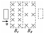 一个矩形线圈匀速地从无磁场的空间先进入磁感应强度为B1的匀强磁场,然后再进入磁感应强度为B2的匀强磁场,最后进入没有磁场的右边空间,如图所示.若B1=2B2,方向均始终和线圈平面垂直,则在如图所示的图中能定性表示线圈中感应电流i随时间t变化关系的是(电流以逆时针方向为正)