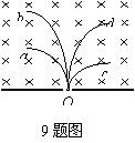 如图电子与质子速度相同,都从O点射入匀强磁场区,则图中画出的四段圆弧,哪两个是电子和质子运动的可能轨迹