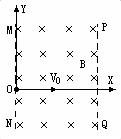 (7分)如图所示为垂直纸面向里的、宽度为D、磁感应强度为B的匀强磁场,它的左侧与右侧的边界分别为MN、PQ。现有一束质量为m、带电量为q的正离子(不计重力)以大小不同的速度(有的速度很小,有的速度很大)沿着与X轴正方向从坐标原点进入磁场区域,试求在磁场的边界PQ和MN上有带电粒子射出的范围。(用坐标表示)