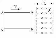(7分)如图所示。光滑的水平面上有一个矩形导体框abcd,ab=0.4m,cd=0.6m,它的电阻为0.4Ω。它的右侧有一宽度为L=0.4m 、磁感应强度为B=0.5T、方向竖直向下的匀强磁场。现用一外力将该导体框以大小为V=5.0m/S的速度匀速地拉到磁场的右侧。试求: