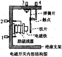 ②在有些应用电磁开关的场合,为了安全,往往需要在电磁铁吸合铁片时,接线柱3、4之间从断开变为接通。为此,电磁开关内部结构应如何改造?请结合本题中电磁开关内部结构图说明。