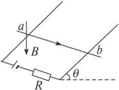 21.(10分)在与水平方向成θ角的光滑导轨上放一导体棒ab,导轨间距为L,质量为m(电阻不计),整个装置放在磁感应强度为B的匀强磁场中,如图所示.电源电动势为E,内阻为r,外电路电阻为R.求导体棒由静止释放时加速度为多大?