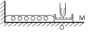 如图所示,劲度系数为k的轻弹簧的一端固定在墙上,另一端和质量为M的容器相连,并放在光滑的水平面上。当容器位于O点时,弹簧为自然长度。在O的上方有一个滴管,容器每通过O点一次,就有质量为m的一个液滴落入容器。开始时将弹簧压缩Lo,然后撤去外力,使容器绕O点往复运动,则
