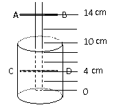 (10分)如图所示,一把直尺紧贴杯壁竖直插入一个高为10cm、直径为8cm的烧杯中,并倒满水(水未画出)。AB为固定在直尺上一个木棒,实验者沿着烧杯口看到如下情况:CD为木棒在水下成的像。画出相应的光路图,并根据数据求出水的折射率(结果可以用根式表示)。
