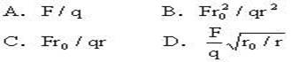 3.在一个真空点电荷电场中,离该点电荷为r0的一点,引入电量为q的检验电荷,所受到的电场力为F,则离该点电荷为r处的场强的大小为 ( )