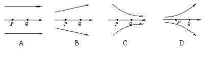 5.如图所示,四个电场线图,一正电荷在电场中由P到Q做加速运动且加速度越来越大,那么它是在哪个图示电场中运动. ( )