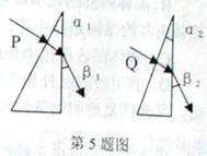 束单色光P和Q分别垂直入射三棱镜后,出射光线与第