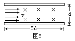 14.两块长5d,相距d的水平平行金属板,板间有垂直于纸面的匀强磁场.一大群电子从平行于板面的方向、以等大小的速度v从左端各处飞入(图8).为了不使任何电子飞出,板间磁感应强度的最小值为______.
