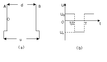 16.平行金属板A、B竖直放置,相距为d,如图(a)所示,板间加有随时间而变化的电压,如图(b)所示。设U0和T已知。A板上O处有一静止的带电粒子,其电量为q,质量为m(不计重力),在t=0时刻开始受板间电场作用而加速向B板运动,途中由于电场反向又向A返回,