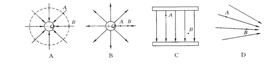 如下图所示各电场中A,B两点电场强度相等的是( )