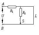 在右图所示电路中,L是并联在电阻R2上的一段电阻忽略不计的导线,电路两端A、B间的电压U恒定,电键S闭合。那么应认为(