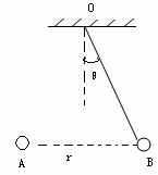 16. (12分) 如图所示,A处放一带正电的点电荷Q(Q未知),在其右方相距为 r的B处(与A在同一水平线上)放一质量为m、电量为q的带电小球,小球用绝缘丝线悬挂于O点与竖直方向成θ角而静止于B点。求: