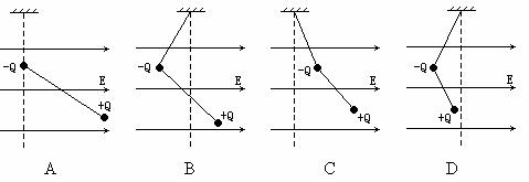 10、有两个带有等量异种电荷的小球,用绝缘细线相连后悬起,并置于水平方向匀强电场中.当两小球都处于平衡时其可能位置是图中的哪一个?( )