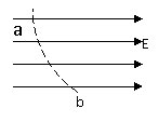 8、如图所示、一个带正电的粒子沿曲线从a到b越过匀强电场,则以下说法正确的是: