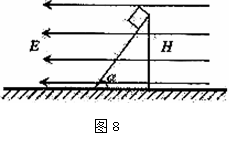 ,电场方向水平向左,斜面高为
