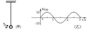 如图(甲)所示,一个小弹丸水平射入一个原来静止的单摆并留在其中,结果单摆的振动图线如图(乙)所示,已知摆球的质量为弹丸质量的5倍,试求: