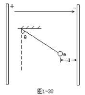 14.(15分) 如图1-30所示,竖直放置的两块足够大的带电平行板间形成一个方向水平向右的匀强电场区域,场强E=3×104N/C.在两板间用绝缘细线悬挂一个质量m=5×10-3kg的带电小球,静止时小球偏离竖直方向的夹角θ=60°.取g=10m/s2.试求: