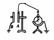 16、质量为m,带正电q的小球用细绳悬挂在两块无限大的平行板电容器间。小球悬点O,摆长L=6cm,摆球质量为m=0.02kg,两板间距为d=8cm高。两板间加电压U=2000V。今向正极板方向将摆球拉到水平位置然后无初速释放,小球在B、A间来回振动。求:(1)q=? (2)小球最大速率