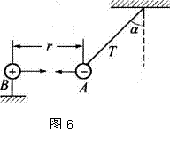 如图6所示,把质量为2g的带负电小球A用绝缘细绳悬起,若将带电量为Q=4.0×10-6C的带电小球B靠近A,当两个带电小球在同一高度相距30cm时,则绳与竖直方向成α=45°角,(g取10m/s2)试问: