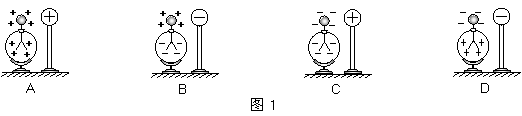 2. 使带电的金属球靠近不带电的验电器,验电器的箔片张开。图1表示验电器上感应电荷的分布情况,其中正确的是( )
