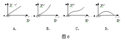 4.如图5所示,AB为一块透明的光学材料左侧的端面。建立直角坐标系如图6,设该光学材料的折射率沿y轴正方向均匀减小。现有一束单色光a从原点O以某一入射角θ由空气射入该材料内部,则该光线在该材料内部可能的光路是下图中的哪一个 ( )