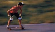 2. 如图是体育摄影中“追拍法”的成功之作,摄影师眼中清晰的滑板运动员是静止的,而模糊的背景是运动的,摄影师用自己的方式表达了运动的美。请问摄影师选择的参考系是