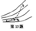 一正离子以初速度v0只在电场力的作用下,由电场中的a点沿虚线所示的轨迹运动到b点,如图,图中的实线表示电场线。(填“<”、 “>”或“=”)