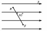 18.如图1-77所示,在匀强电场中的M、N两点距离为2 cm,两点间的电势差为5 V,M、N连线与场强方向成60°角,则此电场的电场强度多大?